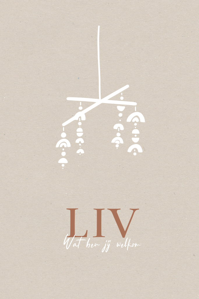 Een lief geboortekaartje met een box wieghanger met regenboogjes in roséfolie. De achtergrond is van kraft waardoor het kaartje er mooi uit komt op Linnen papier.