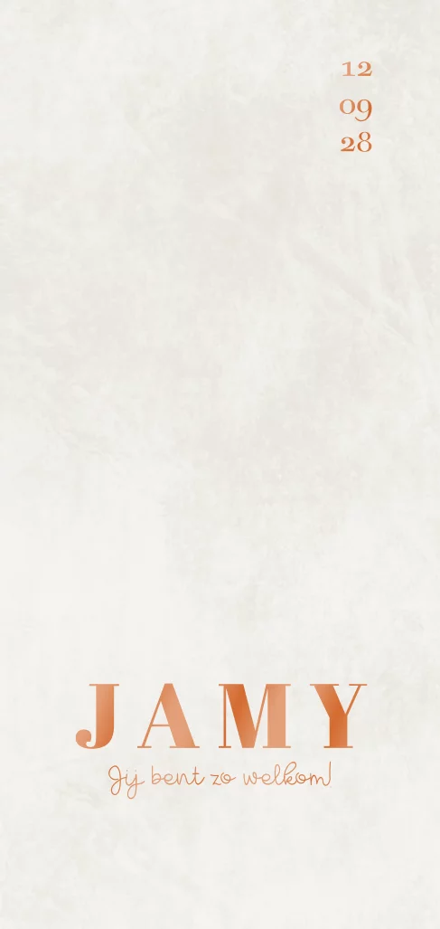 Een lief unisex geboortekaartje in beige wit tinten die dus zowel voor een meisje als jongen kan.