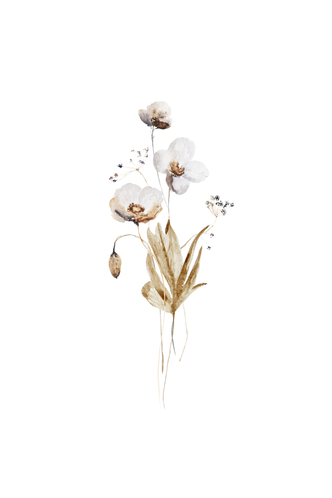 Een lief rustige geboortekaartje voor een jongen of meisje met geschilderde veldbloemen in natuurtinten.