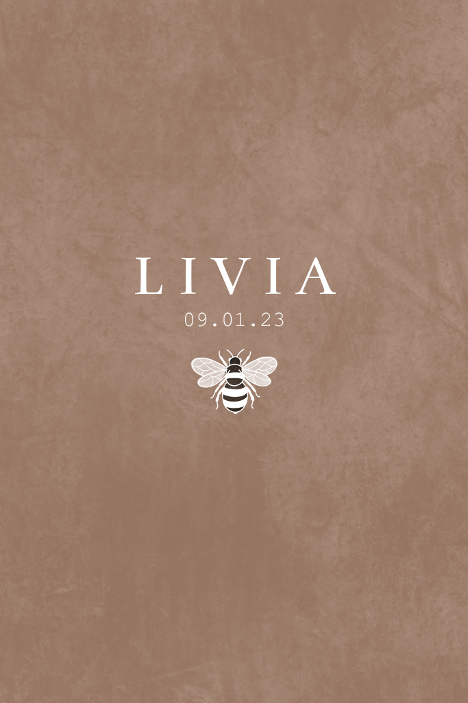 Dit lieve geboortekaartje met een bij heeft ook een stoere uitstraling door de rozige bruine velvet look die je zelf aan kunt passen naar wens.