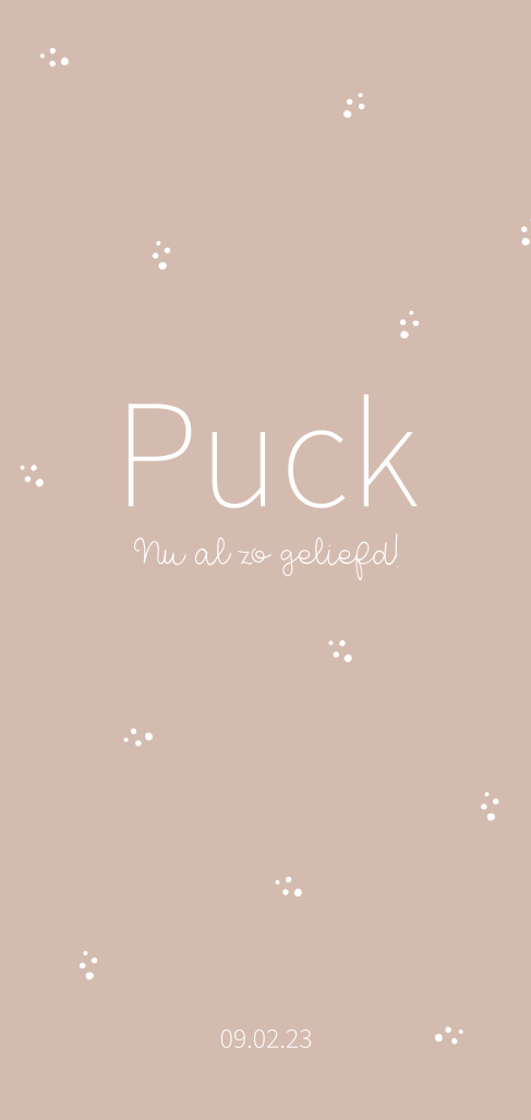 Lief geboortekaartje voor een meisje met oud roze achtergrond en goudfolie tekst en stipjes.