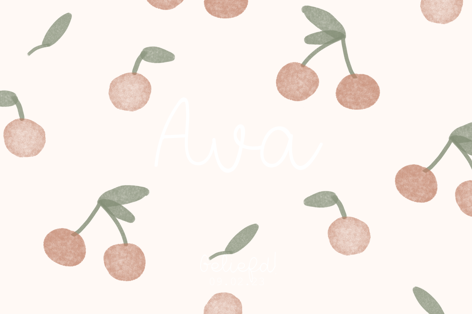 Dit geboortekaartje voor een meisje met kersenprint kun je zelf aanpassen naar wens en smaak. Ook de folie kleur die nu in goudfolie op het kaartje staat kun je aanpassen.