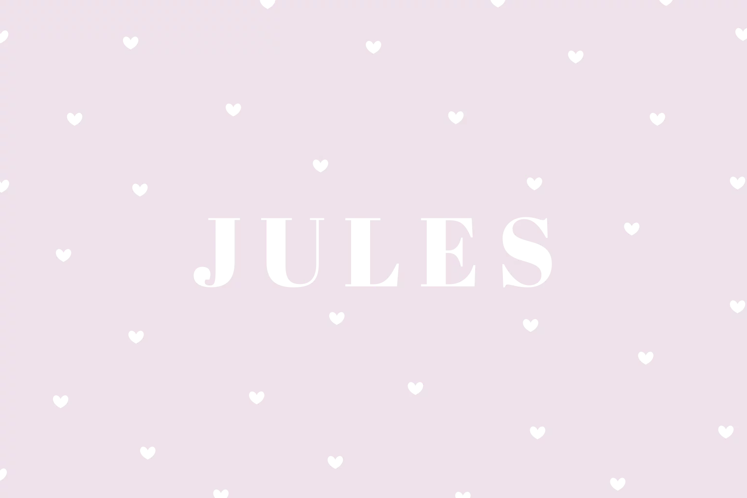 Een lief kaartje voor een meisje met allemaal kleine gouden hartjes. Het geboortekaartje kun je zelf aanpassen naar wens. De naam en de hartjes zijn gedrukt in goudfolie print en die kun je een andere kleur geven net als de lila paarse achtergrond.