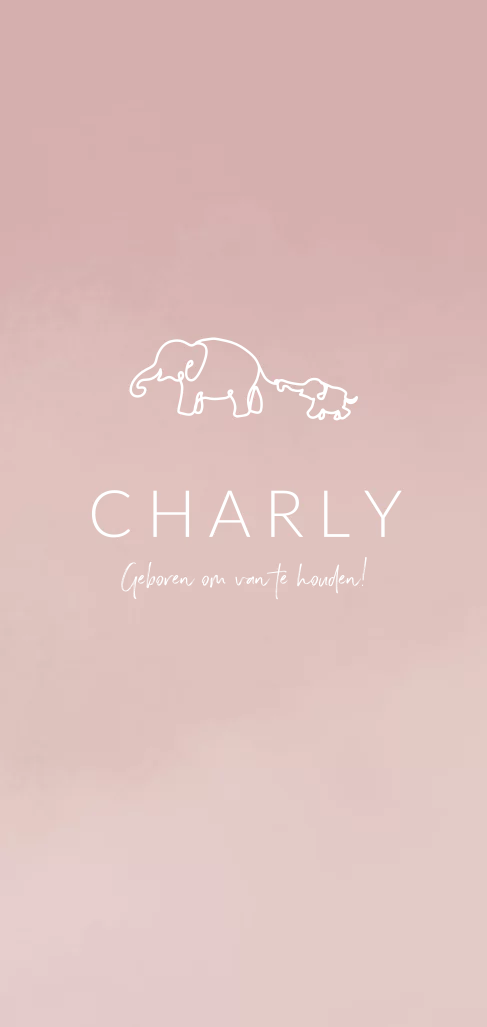 Dit geboortekaart met een olifant en haar jong in goudfolie en roze achtergrond kun je zelf aanpassen naar wens en smaak.