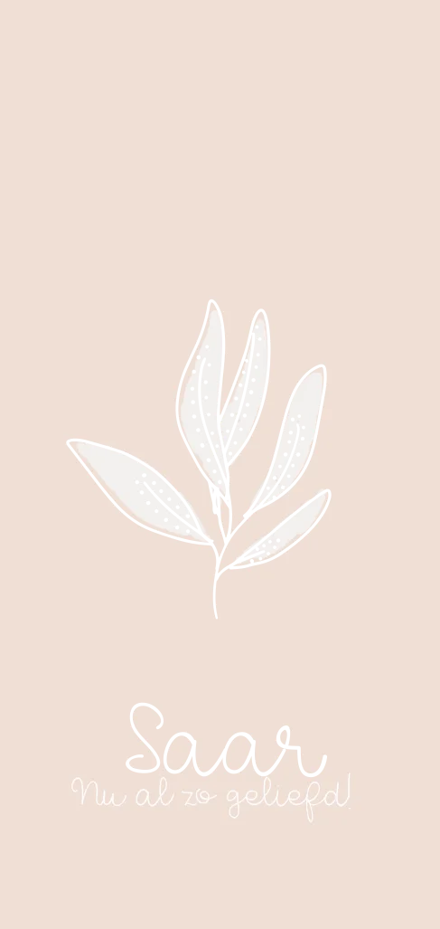 Een lief minimalistisch geboortekaartje met roze oranje achtergrond en takje met rosé folie. Saar