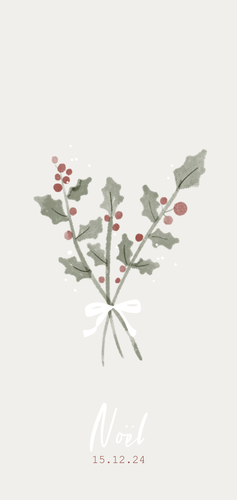 Dit geboortekaartje is met geboortebloem van de maand december: de Hulst.
