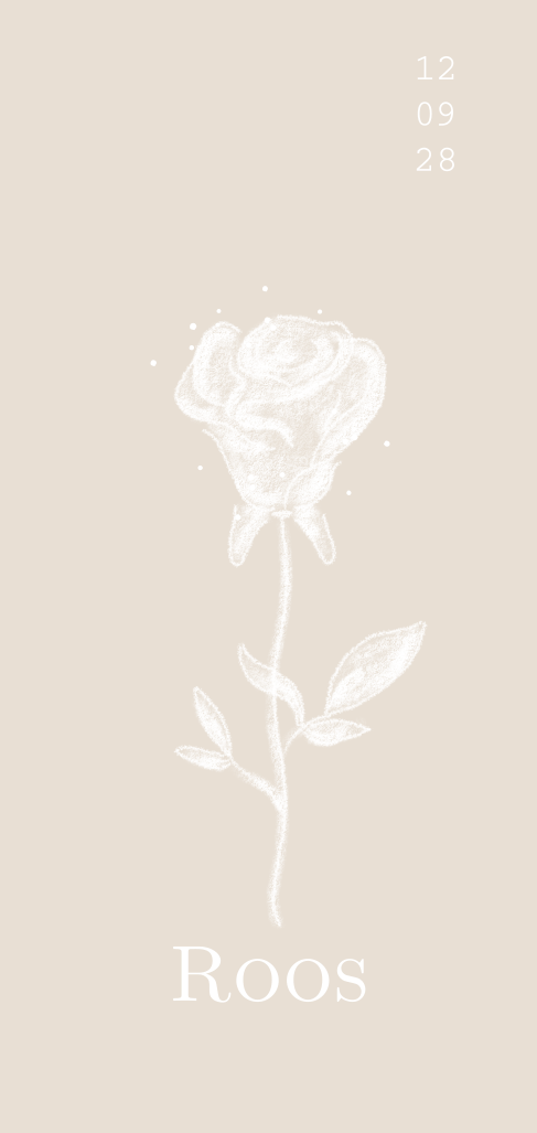 Dit geboortekaartje heeft de geboortebloem van juni de roos. De beige achtergrond en de tekst in goudfolie kun je zelf aanpassen naar wens. Roos