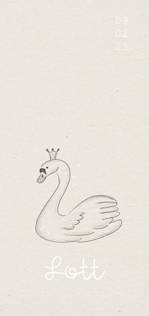 Geboortekaartje met potlood tekening zwaan kraft rosefolie
