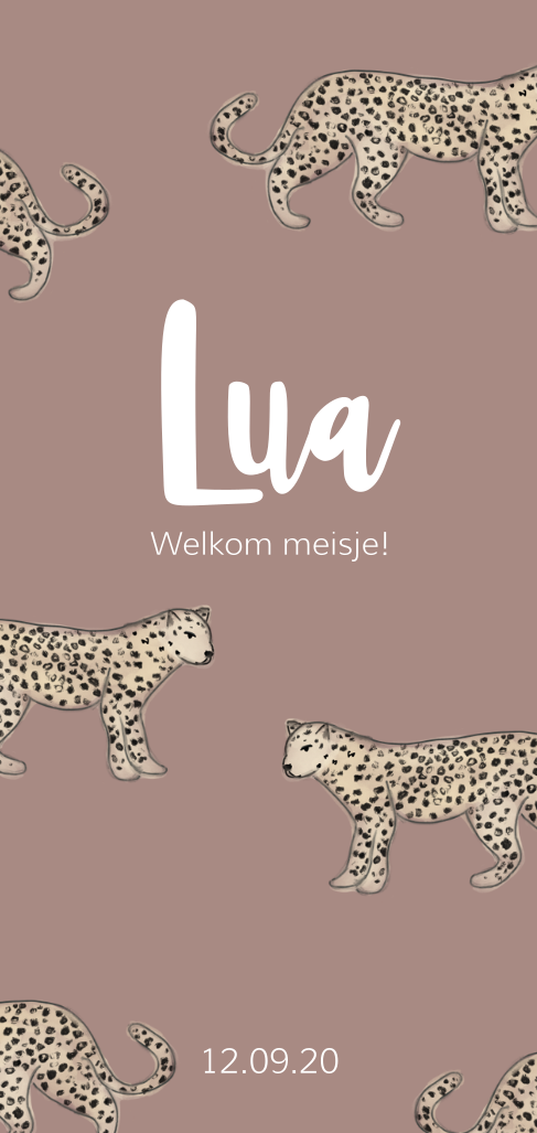 Geboortekaartje met panters en goudfolie voor een meisje