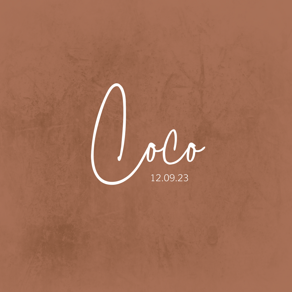 Dit geboortekaartje met velvet velours look kan voor zowel een jongen als een meisje door de oranje bruine kleur.