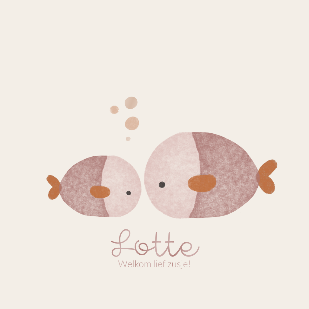 Geboortekaartje zusje meisje met twee getekende visjes oranje roze lak