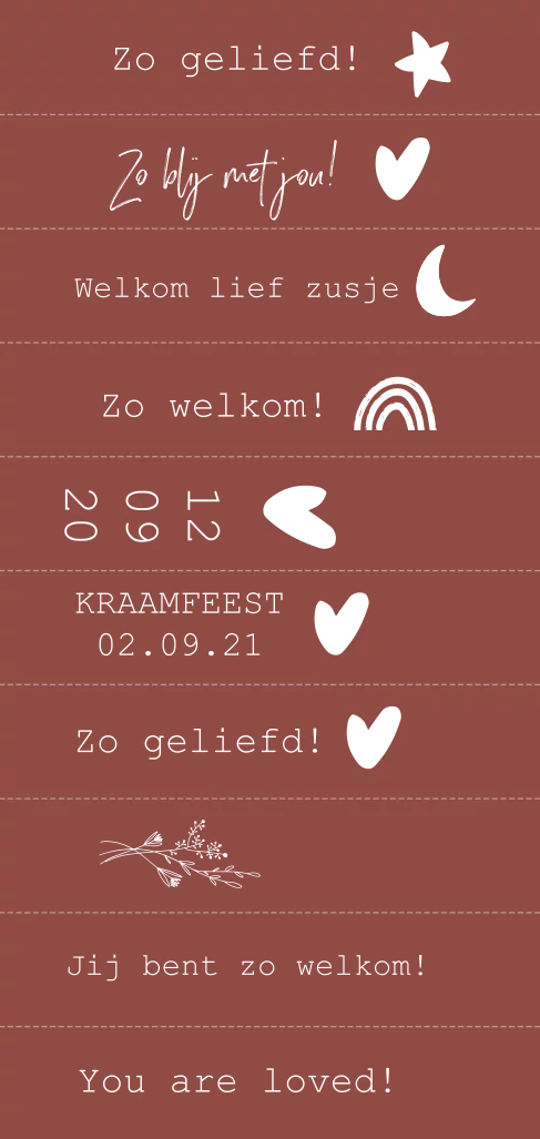 Deze DIY labeltjes voor bij een geboortekaartje of trouwkaart met foliedruk kun je zelf aanpassen. Voor een proefdruk raden wij aan om verschillende labeltjes te laten drukken. Thuis kun je dan puzzelen en kijken welke je het mooiste bij de kaart vindt staan.