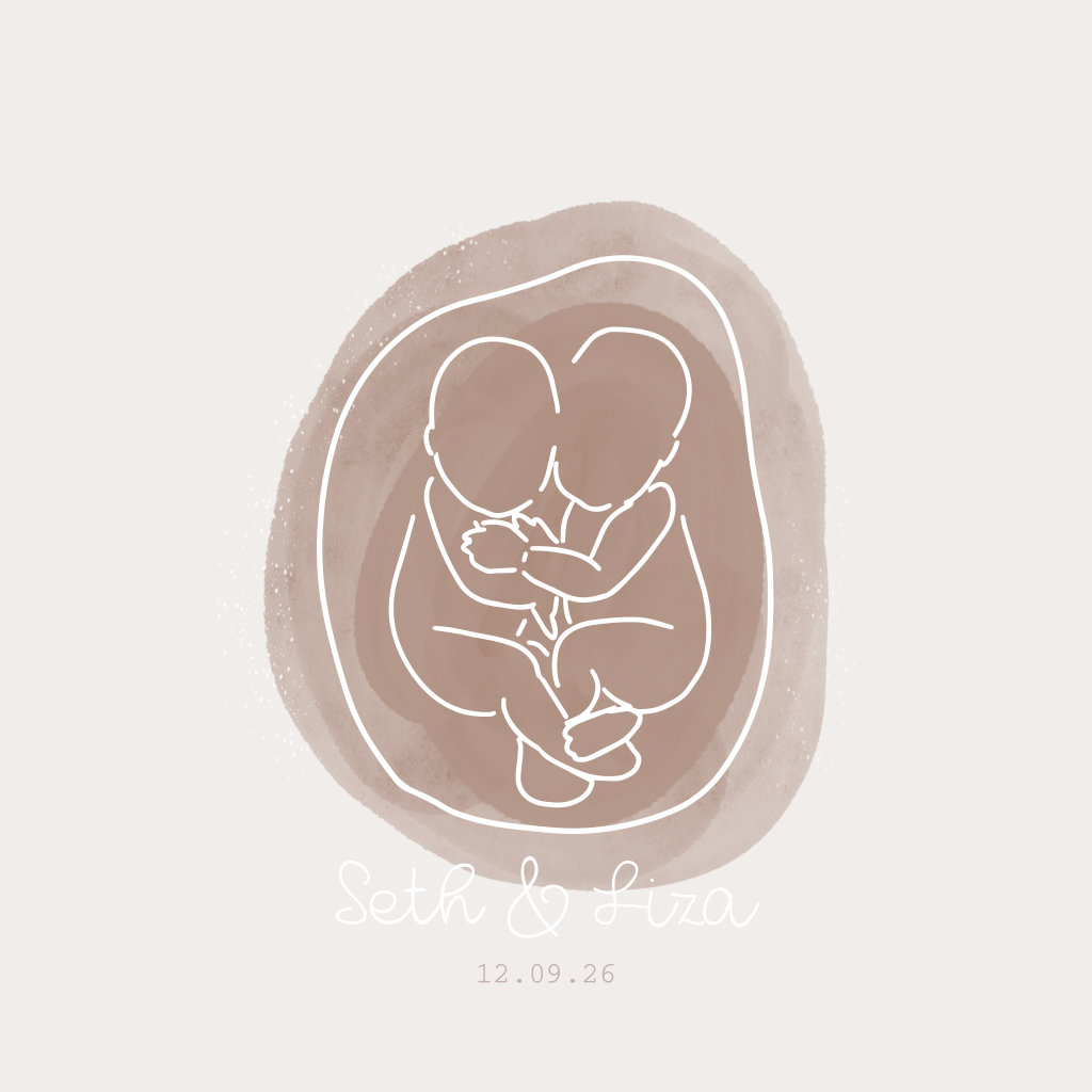 Dit geboortekaartje met lijntekening van een verbonden tweeling kun je zelf aanpassen naar wens. Nu heeft het unisex kleuren en kan het voor beide geslachten maar je kunt de kleuren aanpassen ook de folie kleur.