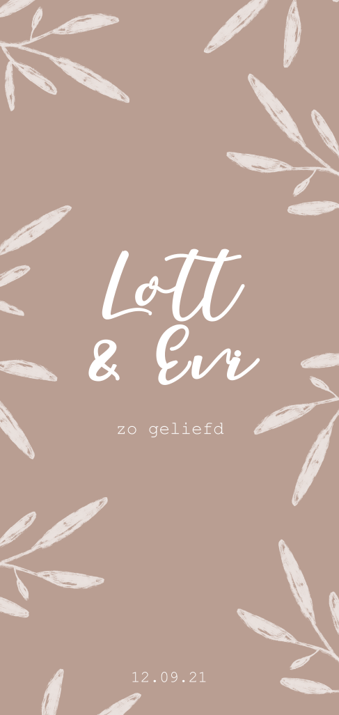 Dit lieve langwerpige geboortekaartje voor een meisjes tweeling met bruine oud roze achtergrond en witte takjes krijgt een extra mooie uitstraling door de teksten in goudfolie op de voorkant. Je kunt deze ook zelf aanpassen naar wens en smaak. Je kan bijvoorbeeld ook zilverfolie, roséfolie of koperfolie instellen.