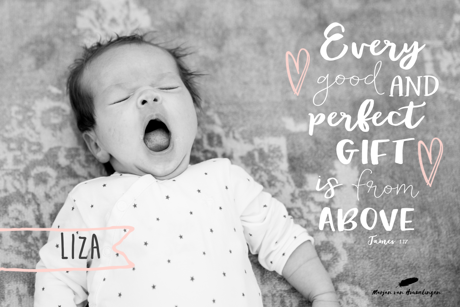 Lief geboortekaartje voor een meisje met bijbeltekst