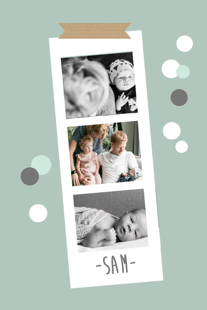 Hip geboortekaartje met photobooth. Voeg straks een foto van jullie eigen wondertje toe en je hebt een uniek kaartje.
