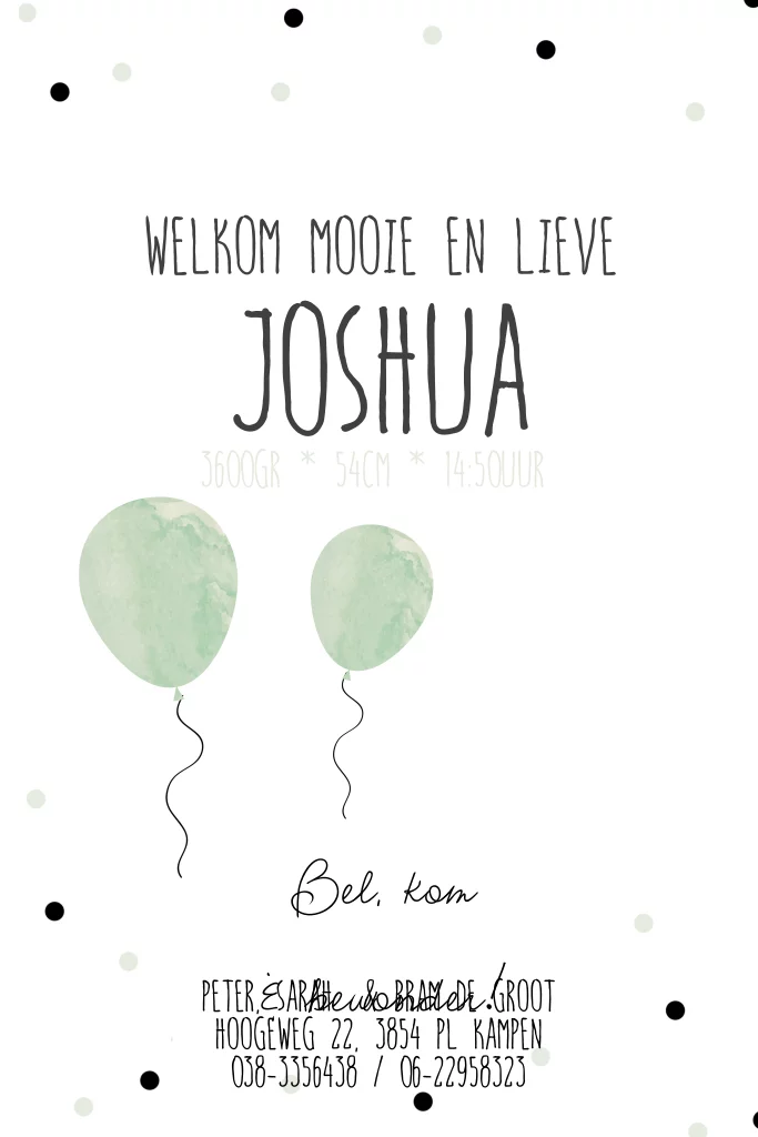 Pas alle geboortekaartjes aan zoals je wilt. Zowel het lettertype, attributen, kleuren en de achtergrond kun je aanpassen.