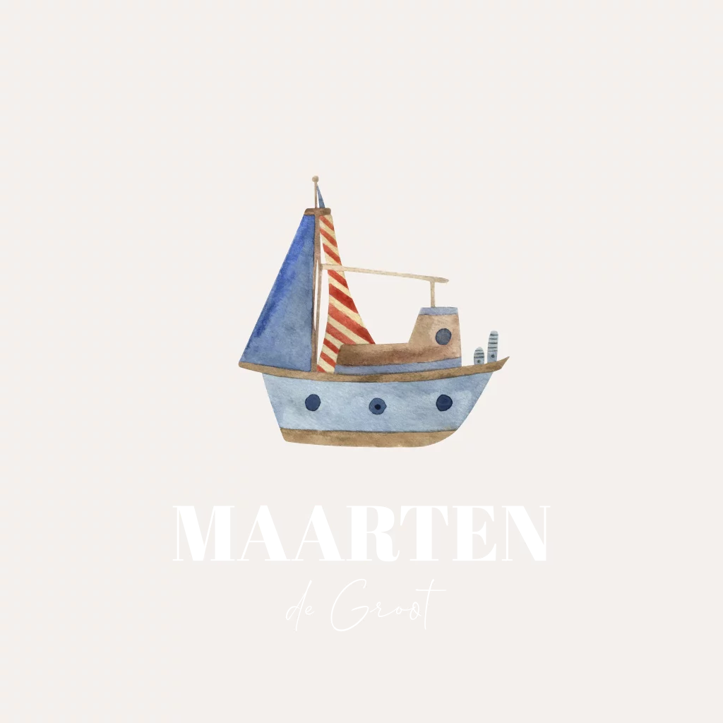 Een stoer maar ook lief geboortekaartje voor een jongen met geschilderde zeilboot zeester en anker Maarten