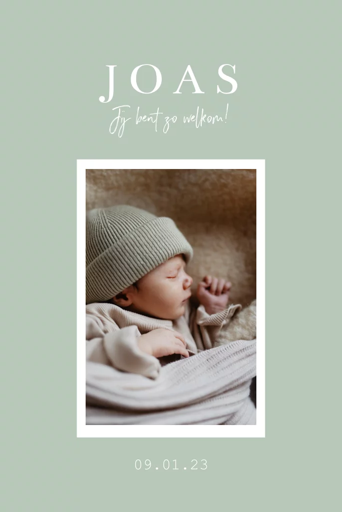 Geboortekaartje jongen groen met newborn foto ronde hoeken