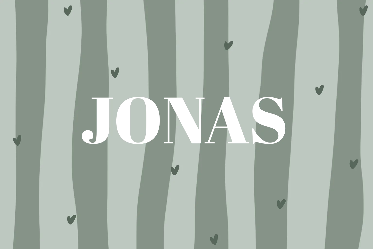 Een lief hip geboortekaartje voor een jongen met groene strepen en naam in goudfolie.