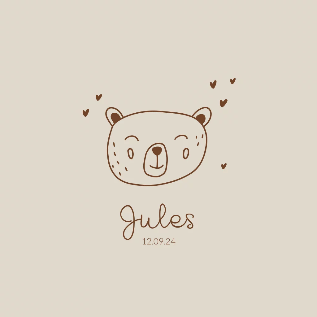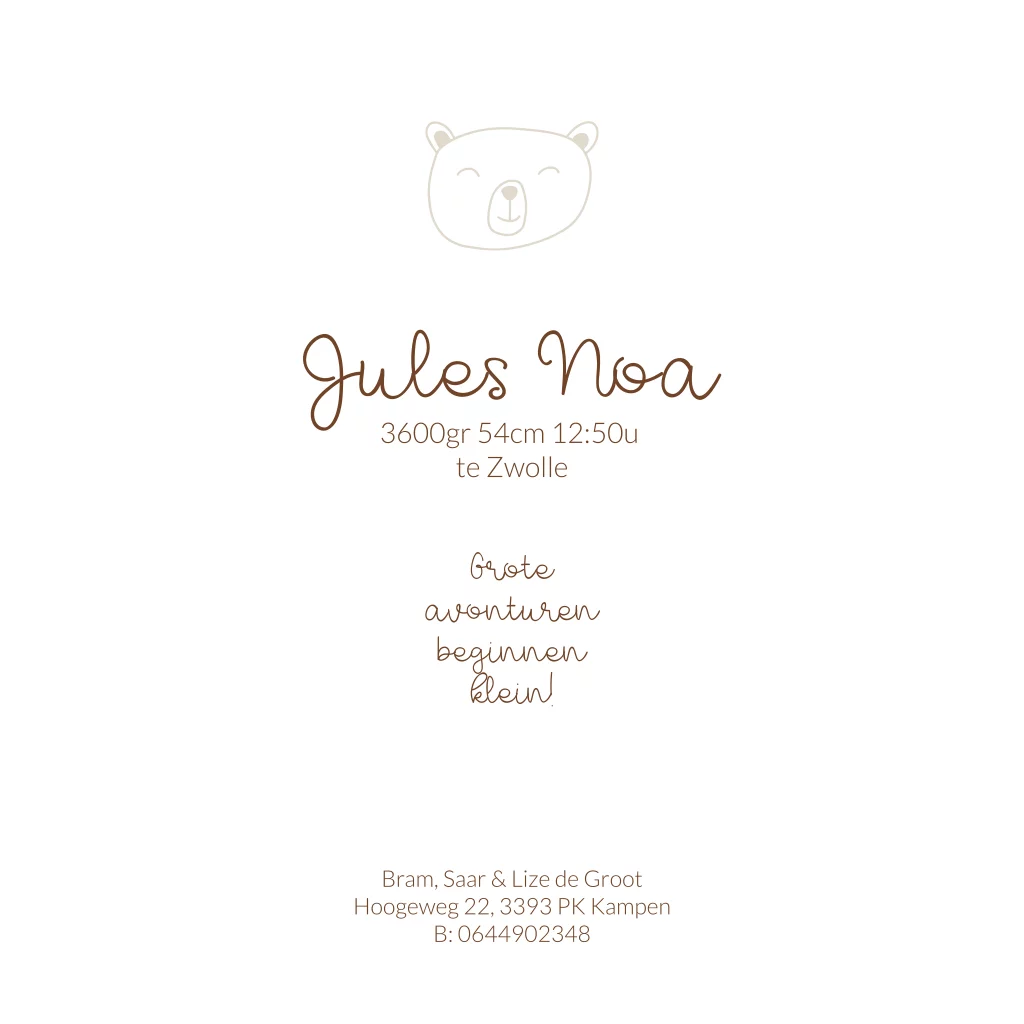 Een lief geboortekaartje dat voor zowel een jongen als een meisje geschikt is door de beige en bruine kleuren.