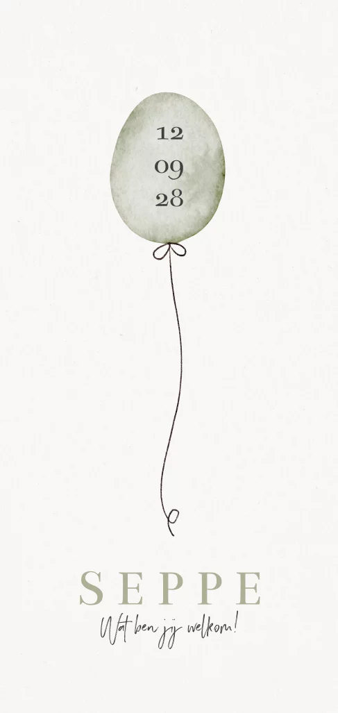 Geboortekaartje jongen met groene watercolour ballon eenvoudig en minimalistisch. Seppe