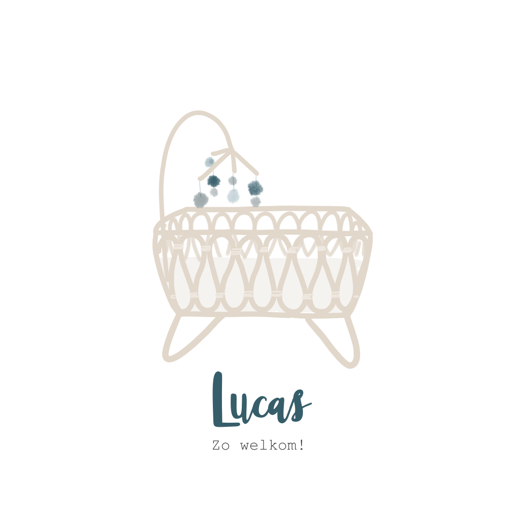 Dit lieve geboortekaartje met retro rotan wiegje kun je zelf aanpassen naar wens en smaak. Lucas