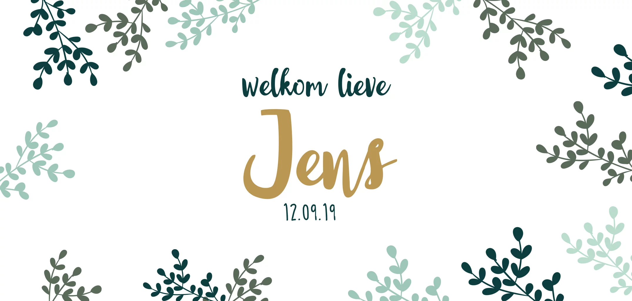 Dit stoere maar ook lieve geboortekaartje kun je aanpassen. De okergele en stoere blauw groene kleuren kun je zo laten, maar ook veranderen zoals je wilt. Ook zijn er heel veel lettertypes waar je uit kunt kiezen.