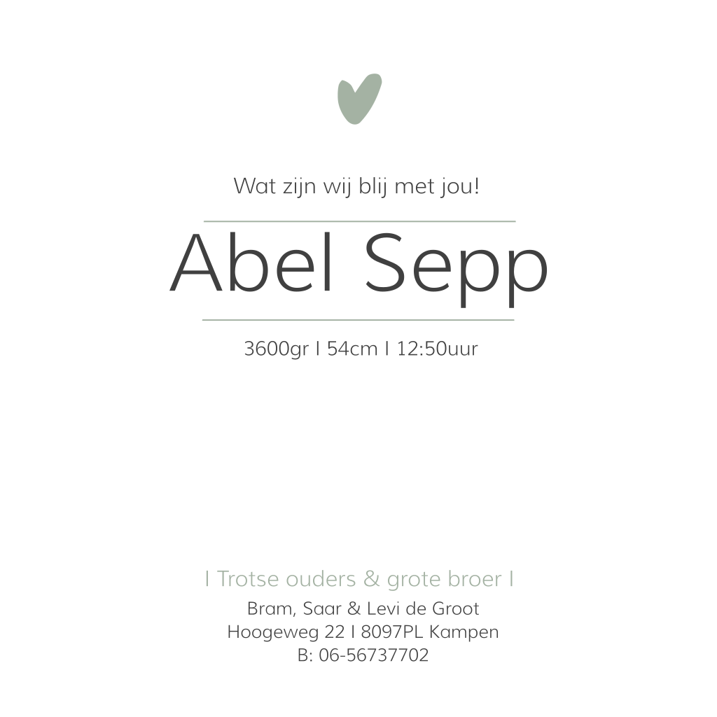 Het minimalisme in dit geboortekaartje is de kracht van dit kaartje. Speel met kleuren en lettertypes en maak er een eigen kaartje van.