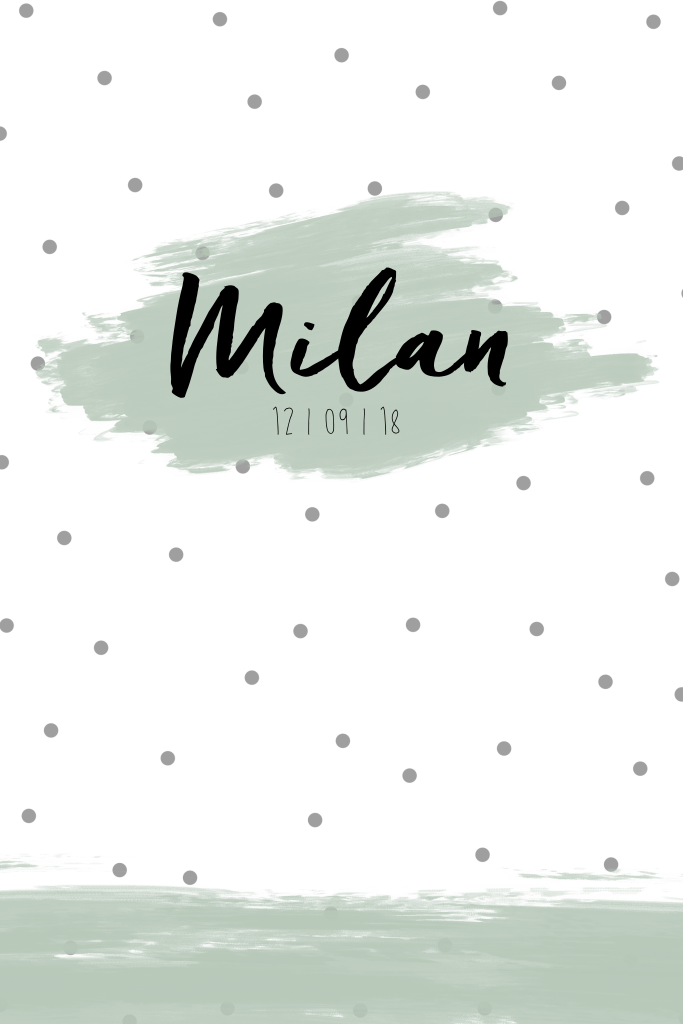 Geboortekaartje voor een jongen met stipjes en brush strepen