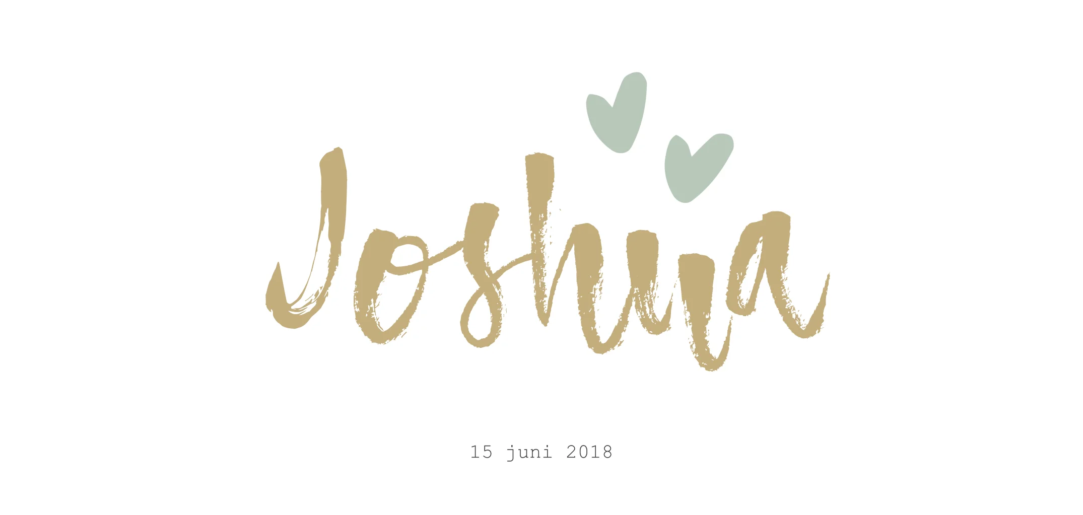Dit lieve en rustige geboortekaartje met groene hartjes en goudkleurige letters pas je aan naar wens en smaak. Joshua