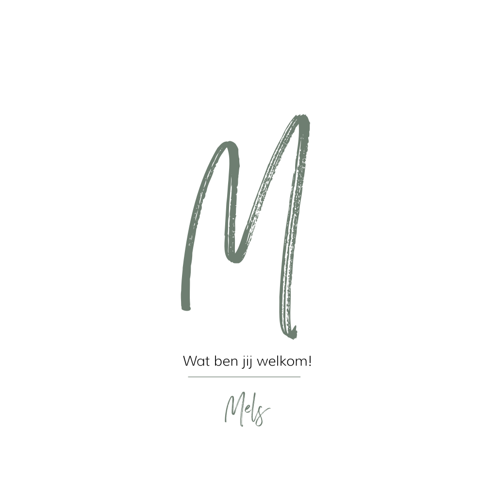 Dit stoere minimalistische geboortekaartje met letter kun je zelf aanpassen zoals je wilt.