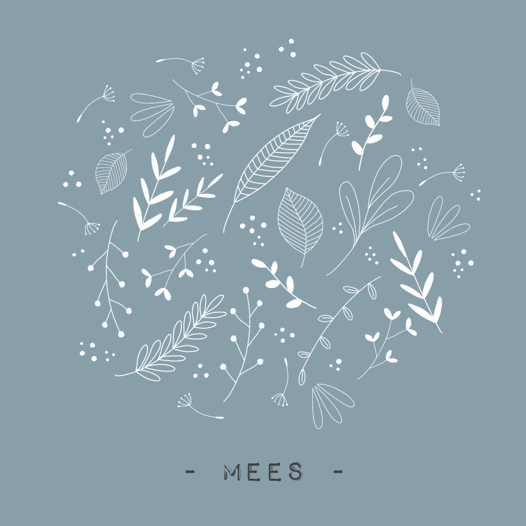 Lief vierkant geboortekaartje met blauwe achtergrond en takjes