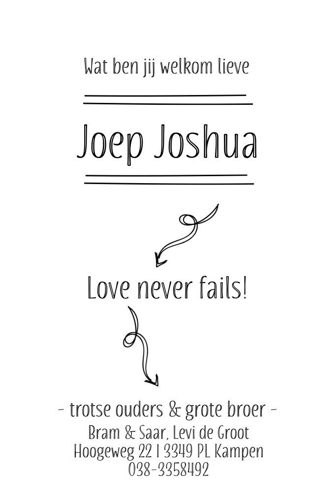 Pas dit geboortekaartje aan naar wens. Straks met een foto van jullie eigen wondertje en je hebt een uniek kaartje.