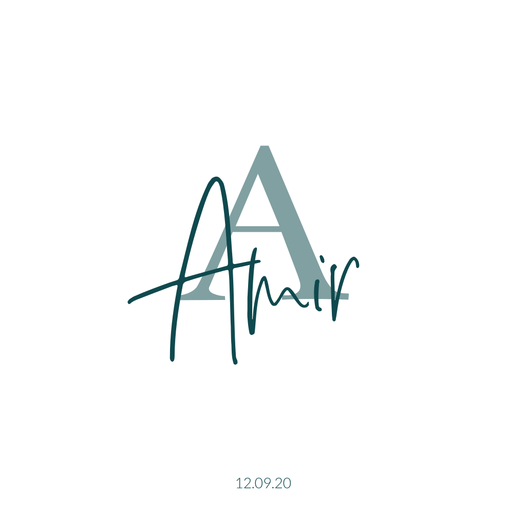Dit minimalistische geboortekaartje met initialen van de naam en blauwe kleuren kun je zelf aanpassen naar wens. Amir