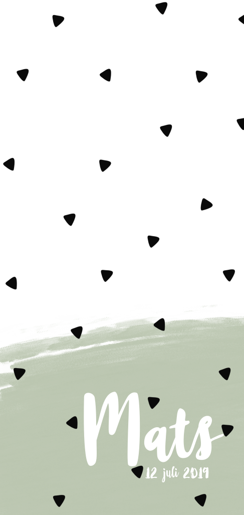 Stoer geboortekaartje met monochrome driehoekjes en verfstrepen