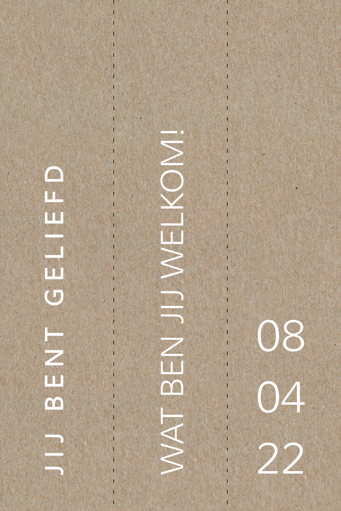 Druk dit kaartje af als 8x5 cm en knip het in drieën op de aangegeven stippellijntjes. Bevestig het labeltje vervolgens aan het kaartje met bijvoorbeeld een paperclip. De tekst kan je zelf opmaken in de online editor of ontwerp het zelf met de elementjes uit de beeldbank. Het ontwerp kan je uiteraard drie keer hetzelfde op 1 kaartje laten afdrukken.