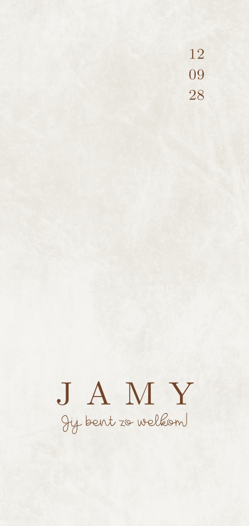 Een lief minimalistisch geboortekaartje voor een jongen of meisje met wit beige velvet look.