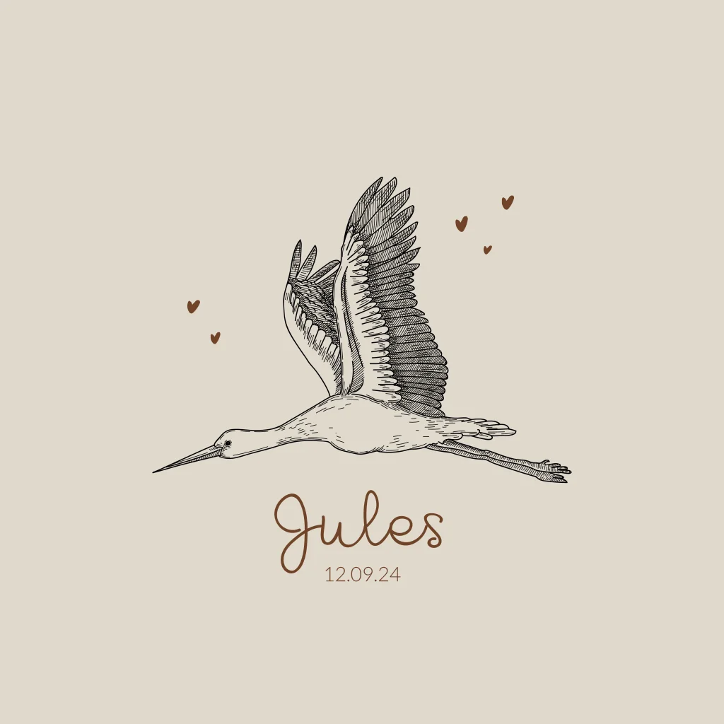 Dit mooie geboortekaartje met getekende ooievaar is unisex. Dus kan voor zowel een jongen als meisje.