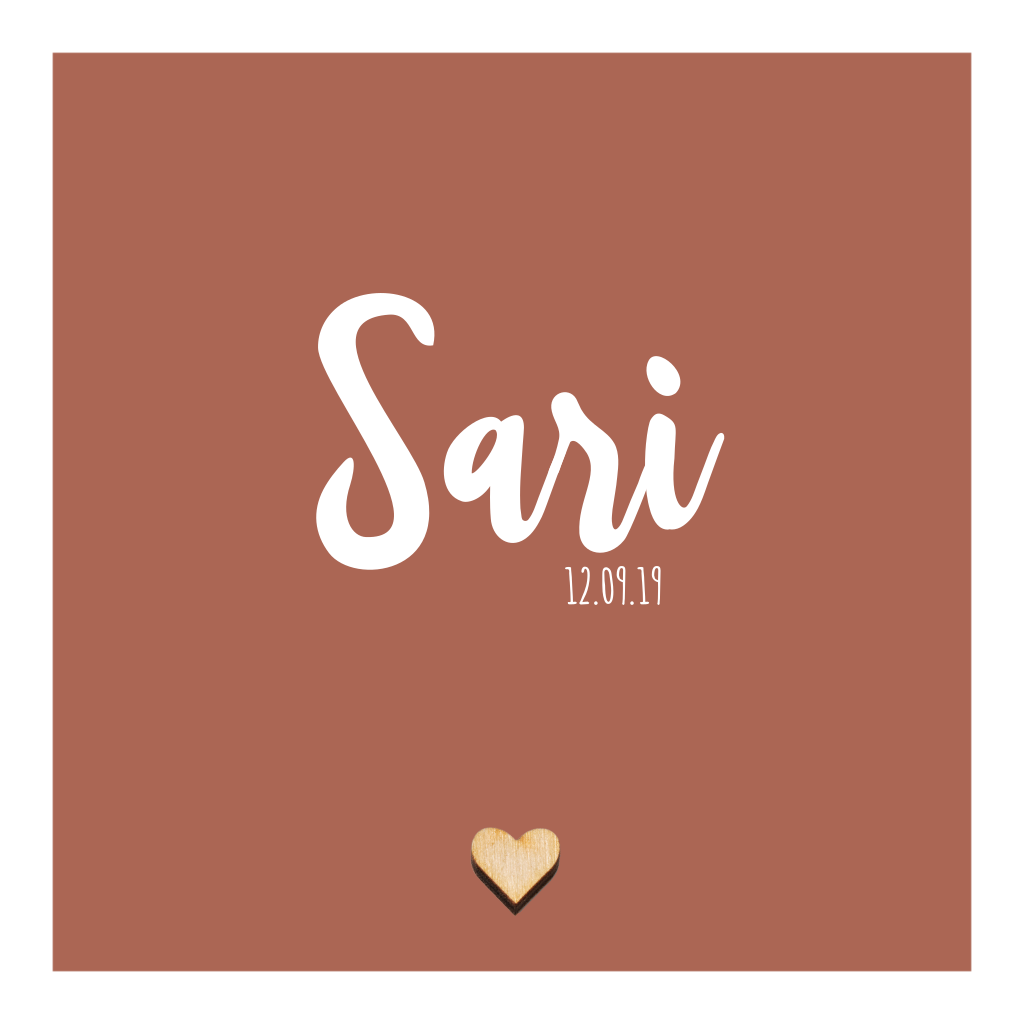 Geboortekaartje voor een meisje met houten hartje en roestbruin