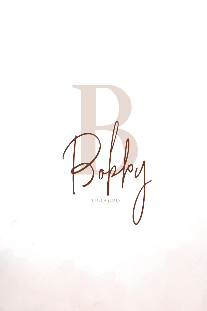 Geboortekaartje meisje met letter initialen roze en roestbruin