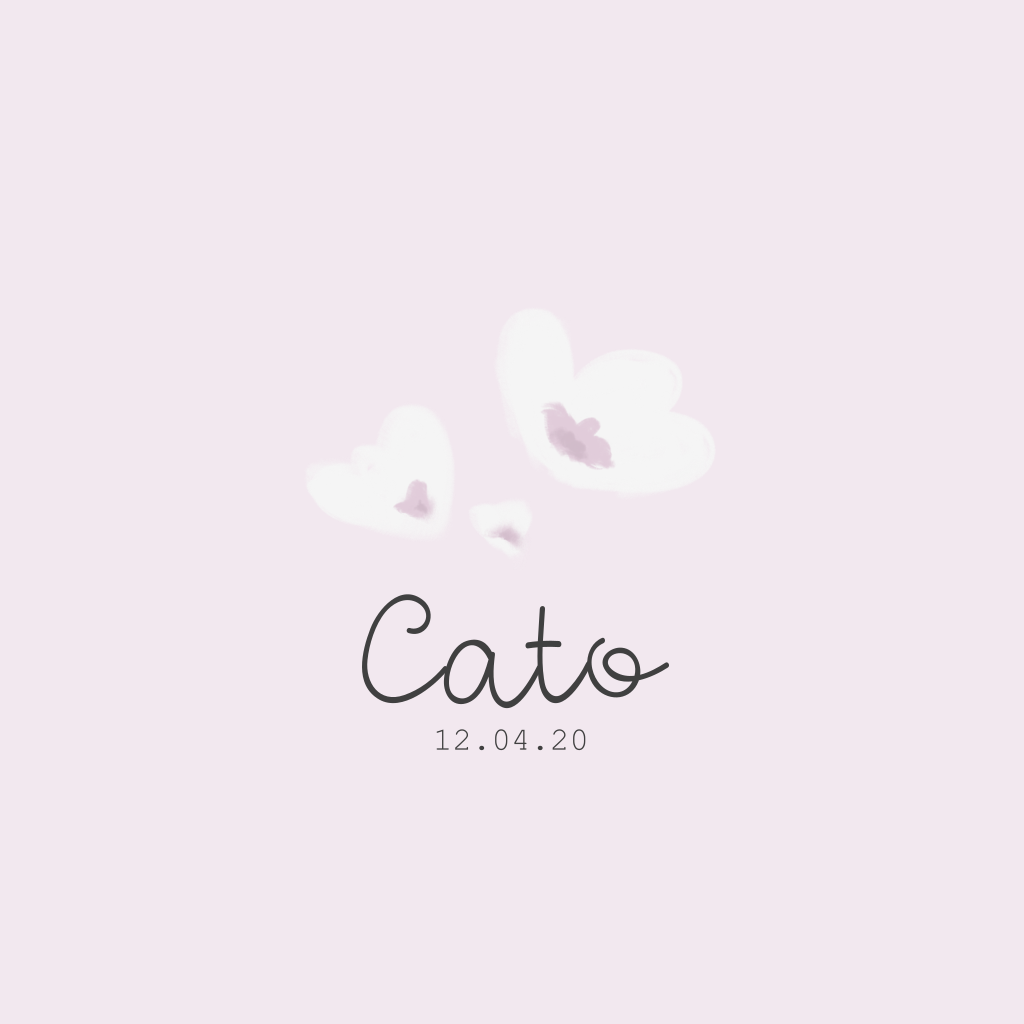 Een lief geboortekaartje voor een meisje met paarse achtergrond en witte bloemetjes. Cato