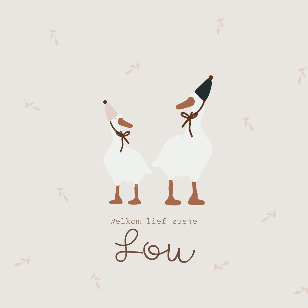 Dit lieve geboortekaartje met illustraties van twee gansjes (broertje en zusje) kun je zelf aanpassen naar wens en smaak. Lou lou