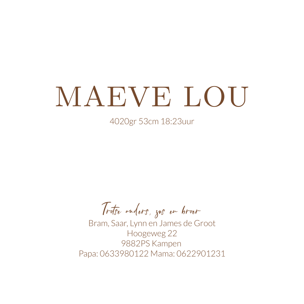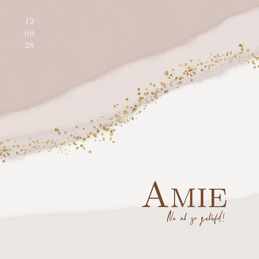Een dubbel geboortekaartjes voor een meisje met roze watercolour vegen en goudlook achtige stipjes. Dit kaartje kun je zelf nog aanpassen naar wens.
