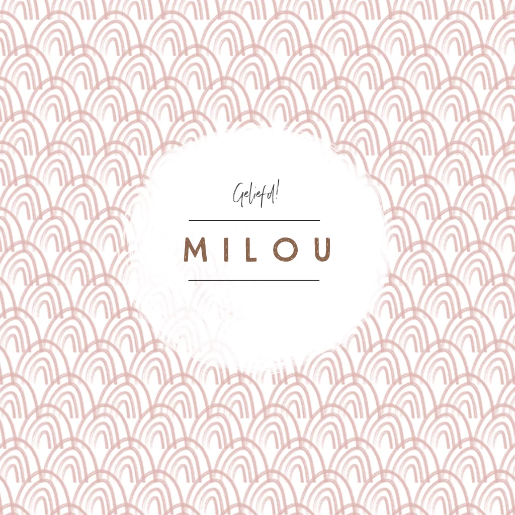 Dit lieve geboortekaartje voor een meisje heeft een beetje retro uitstraling door de regenboogjes print. De kleuren en het lettertype kun je zelf aanpassen.