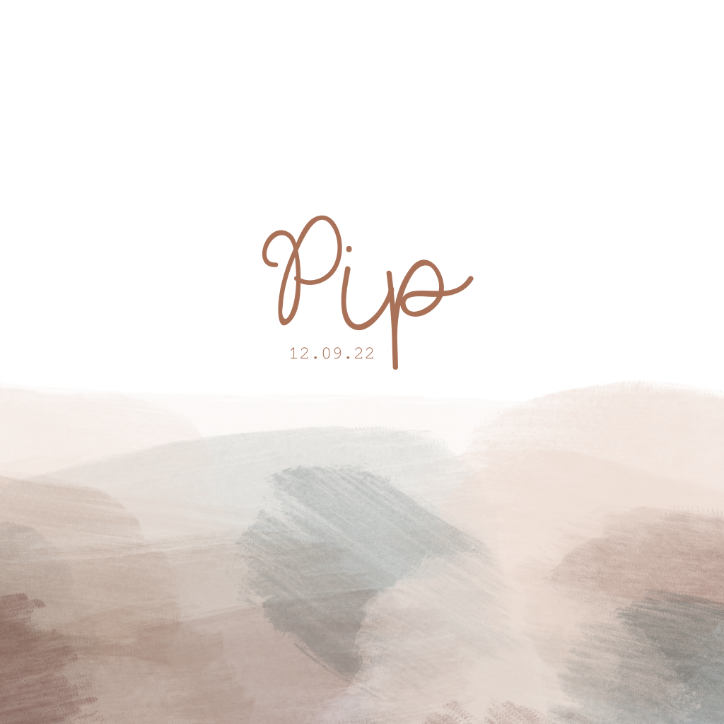 Dit geboortekaartje voor een meisje met roestbruine oudroze en blauwe strepen met de naam in roestbruin. De naam Pip en alle andere tekst kun je natuurlijk aanpassen naar wens. Dit geboortekaartje komt erg mooi uit op Oud Hollands papier.