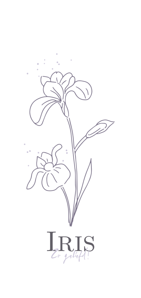 Dit geboortekaartje is met de geboortebloem van februari de Iris. De lila paarse kleuren van de bloem komen ook terug op dit kaartje maar je kunt de kleuren zelf aanpassen naar wens. Je kunt de bloem ook omzetten in foliedruk.