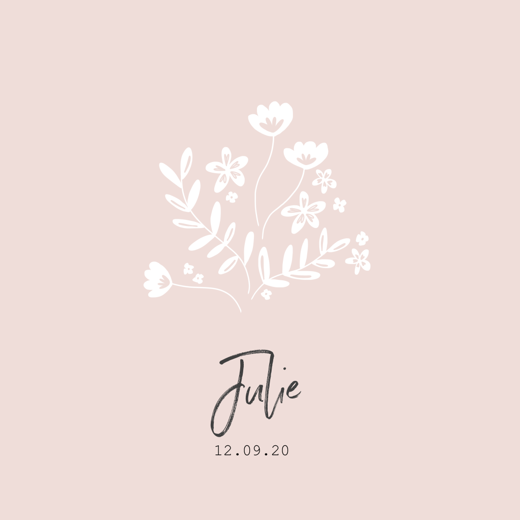 Dit lieve geboortekaartje met bloemen boeketje en roze kleuren voor een meisje kun je helemaal aanpassen naar wens en smaak. Julie