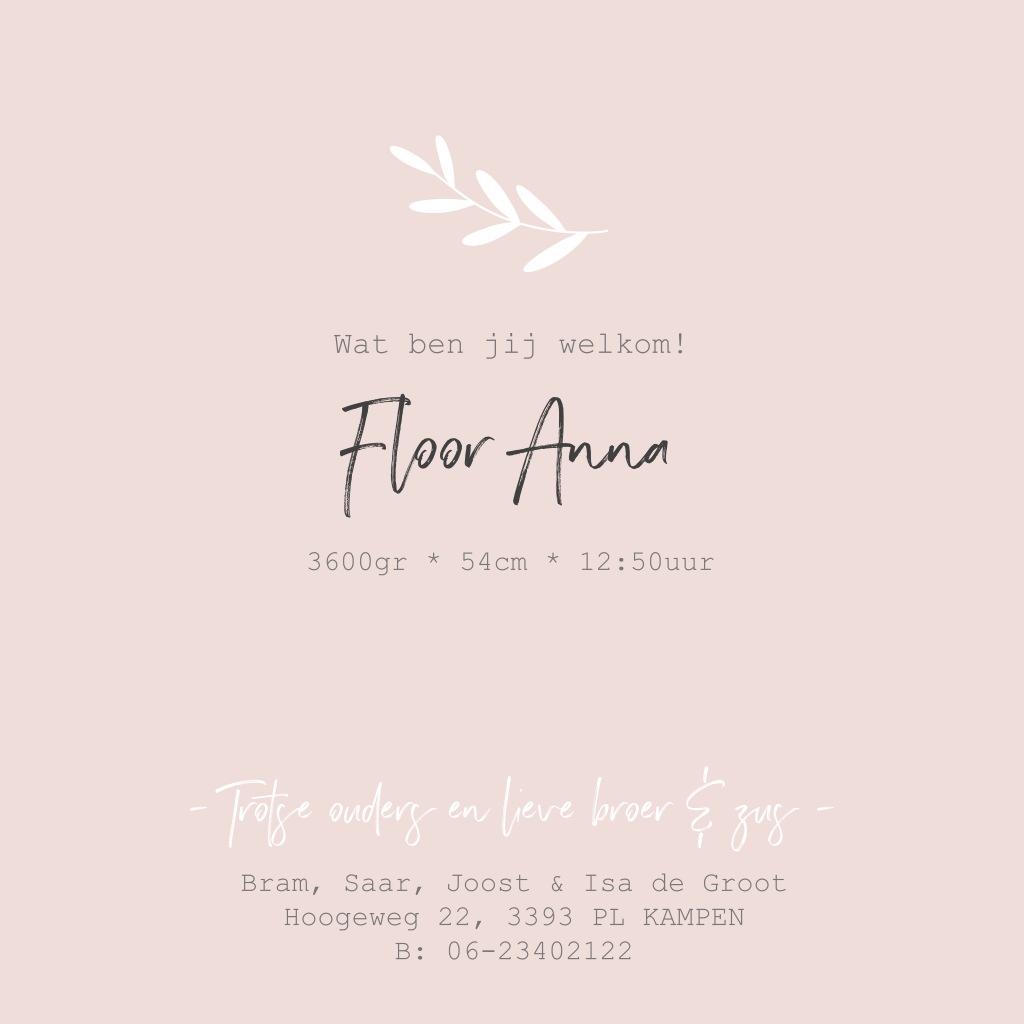 Dit lieve geboortekaartje voor een meisje met een klein boeketje bloemen kun je helemaal aanpassen zoals je wilt. Floor