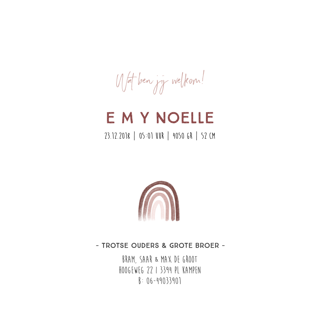 Dit lieve dubbelzijdige geboortekaartje voor een meisje met regenboog en roze achtergrond kun je helemaal maken zoals je zelf wilt. De kleuren en het lettertype zijn allemaal aan te passen.